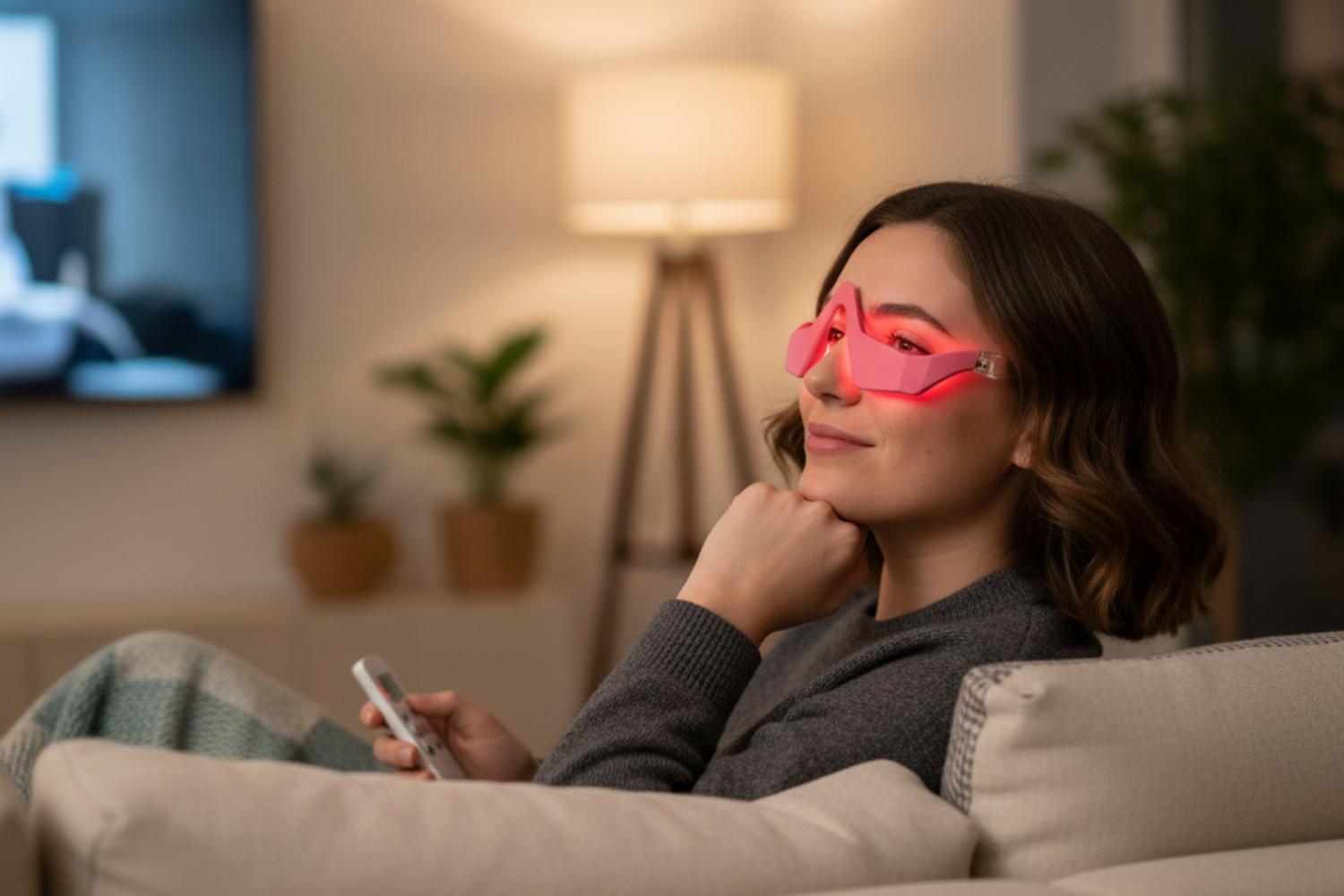 The red light therapy stimulates collagen production, helping strengthen weakened skin over time. Fine lines soften, texture improves, and the under-eye area feels firmer. Results look natural, not overdone. Just healthier, younger-looking skin.